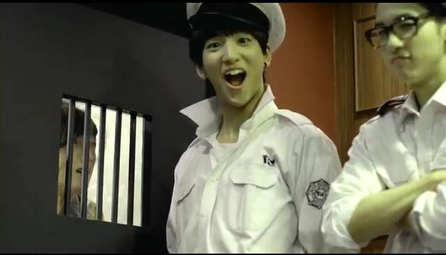 - Jinyoung Dipenjara gitu sama para pa polisi dan nanti bakal di adili sama Hakim Sandeul. hehehe .... kacian kacian .